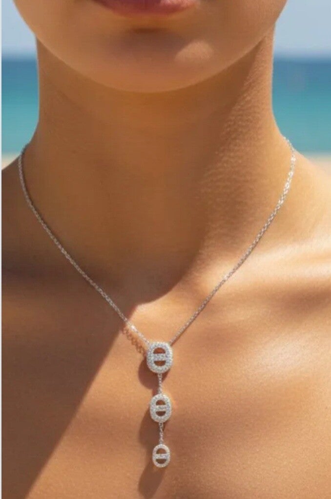 Un superbe collier en Y avec 3 mailles marines en strass, disponible en doré ou argenté 💖