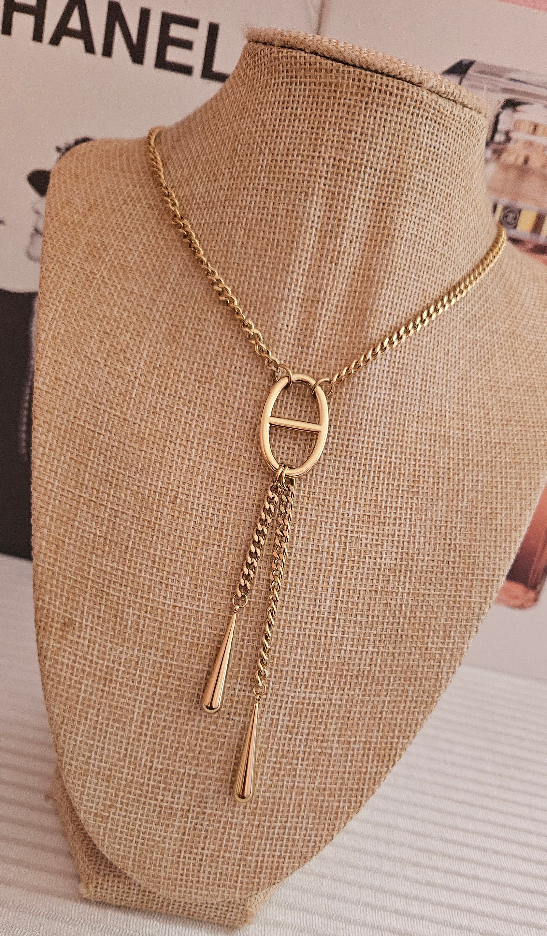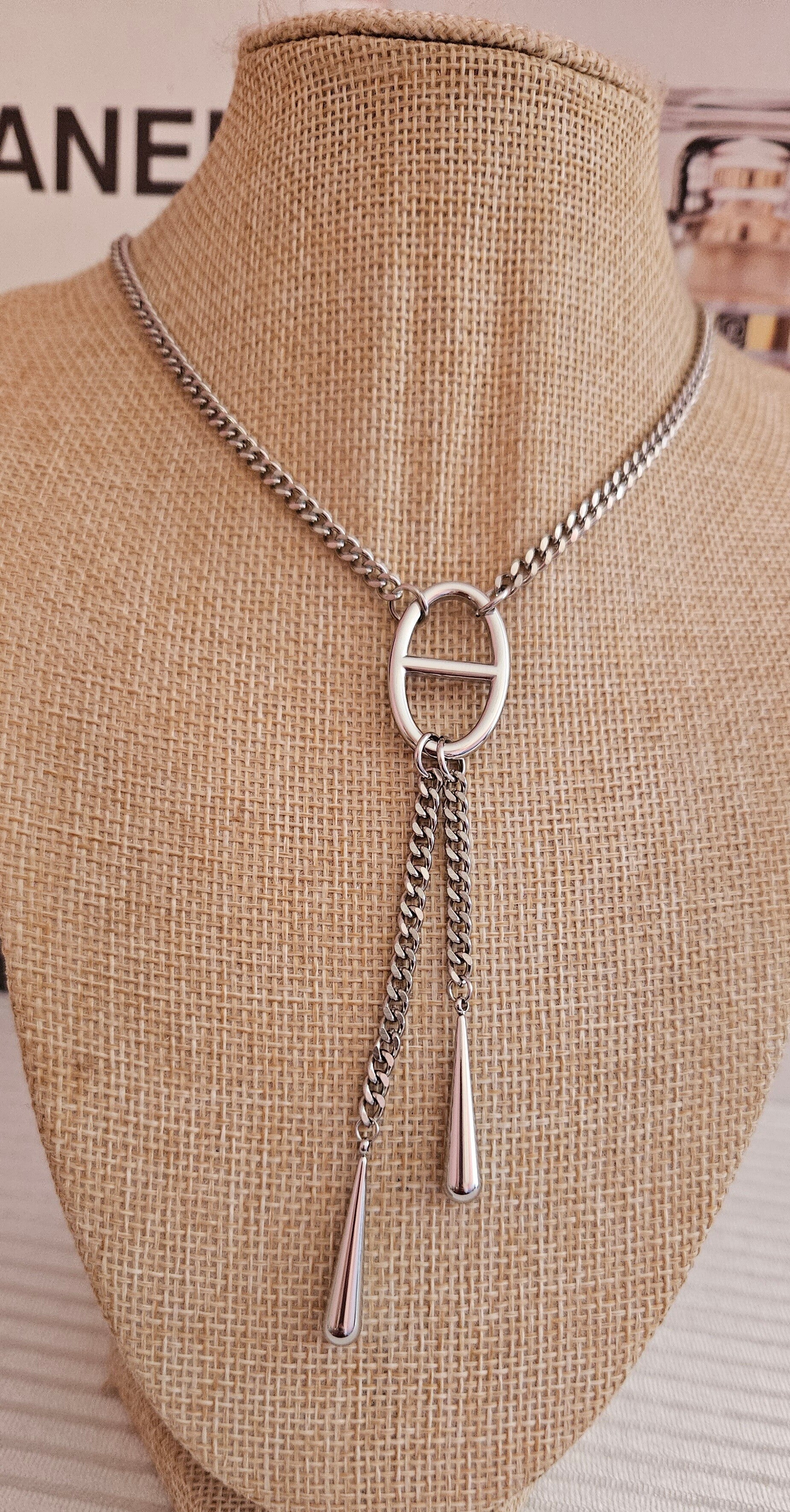 une maille centrale audacieuse accompagnée de deux chaînes élégantes qui retombent de chaque côté 🤍
