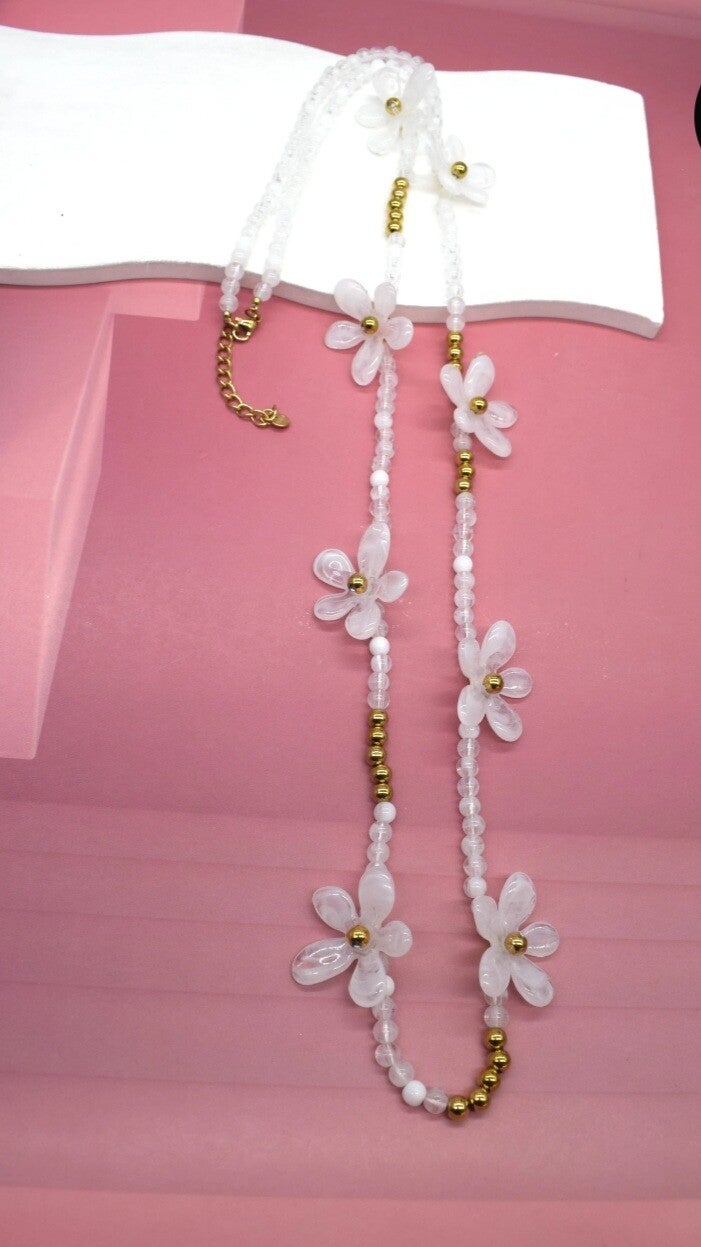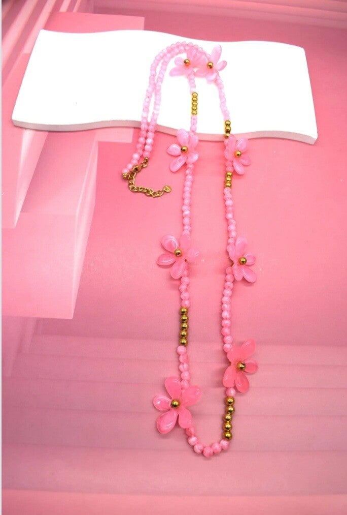 Maxi Sautoir ultra long, tout perlé, 🌈 fleurs colorées, en acier inoxydable.