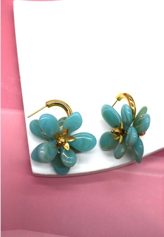 De petites créoles dorées, délicatement ornées de pétales colorés, pour un look frais et estival. À choisir selon vos envies, en acier inoxydable et prêtes à sublimer toutes vos tenues. 💛💙💜