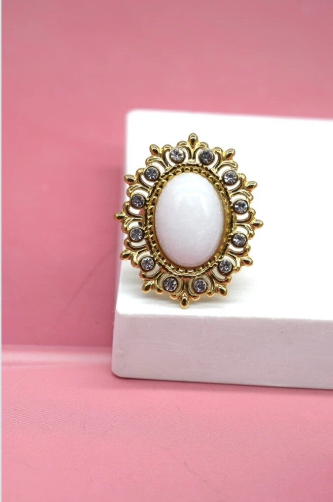 Craquez pour cette magnifique bague XL ! Elle arbore une belle pierre colorée, entourée de strass scintillants assortis, pour un effet élégant et lumineux.