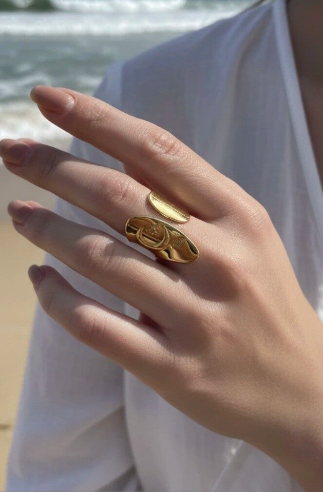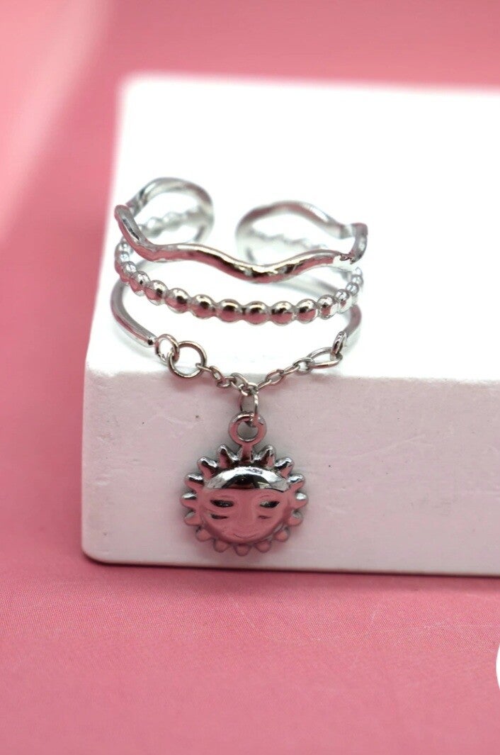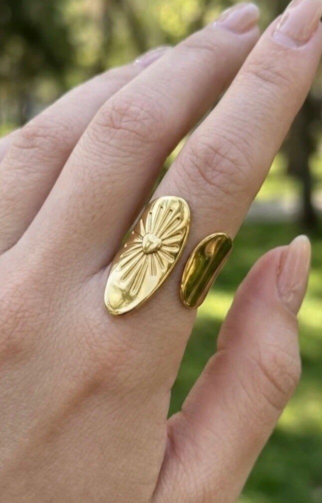 Chaque bague est en acier inoxydable, ajustable et disponible en doré ou argenté, pour que vous puissiez mixer et matcher selon vos envies.