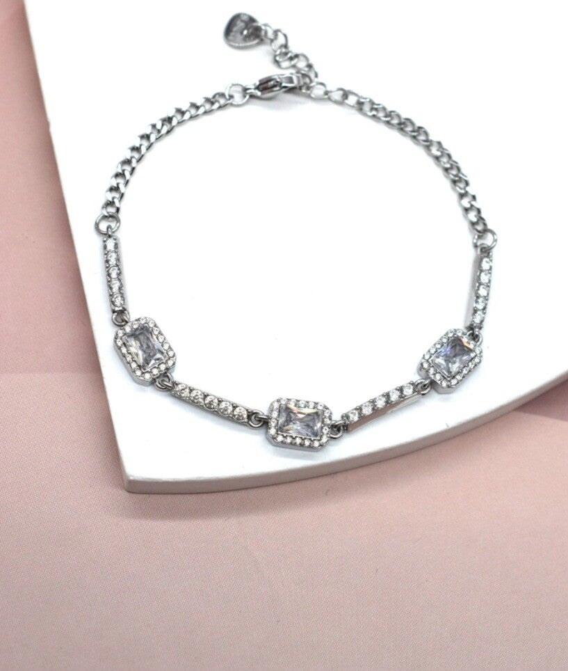 "Craquez pour nos magnifiques bracelets Éclats ! Trois modèles étincelants, entièrement pavés de strass, disponibles en doré et argenté. Confectionnés en acier inoxydable et ajustables, ils apportent une touche de glamour à toutes vos tenues."