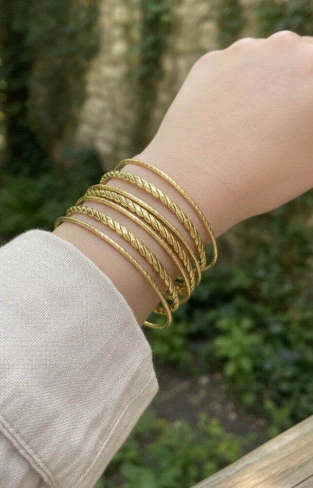 "Lot de 7 Bracelets Jonc Dorés ✨ 3 Torsadés – Acier Inoxydable, Taille Classique"