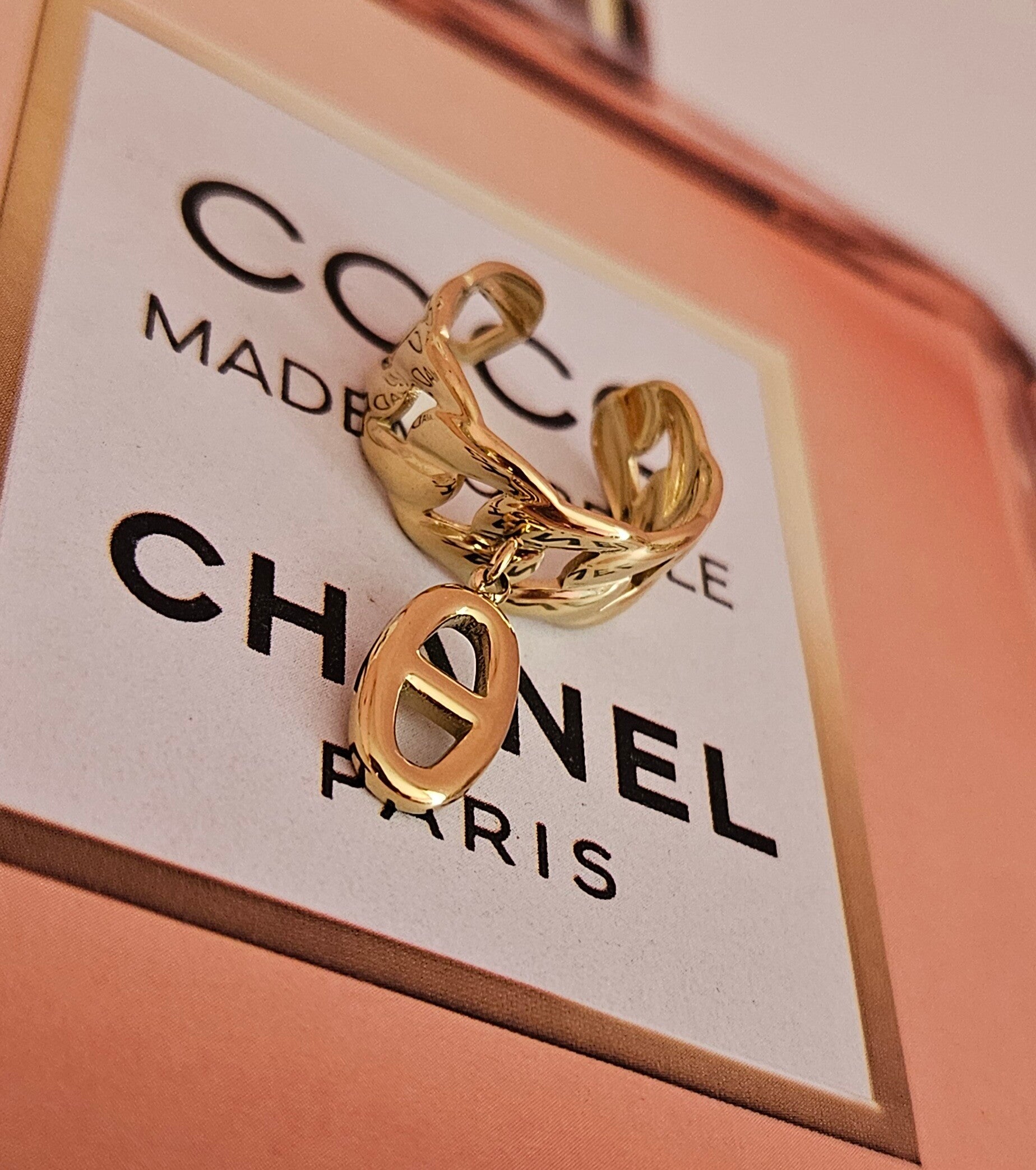 Bague breloque maille marine doré