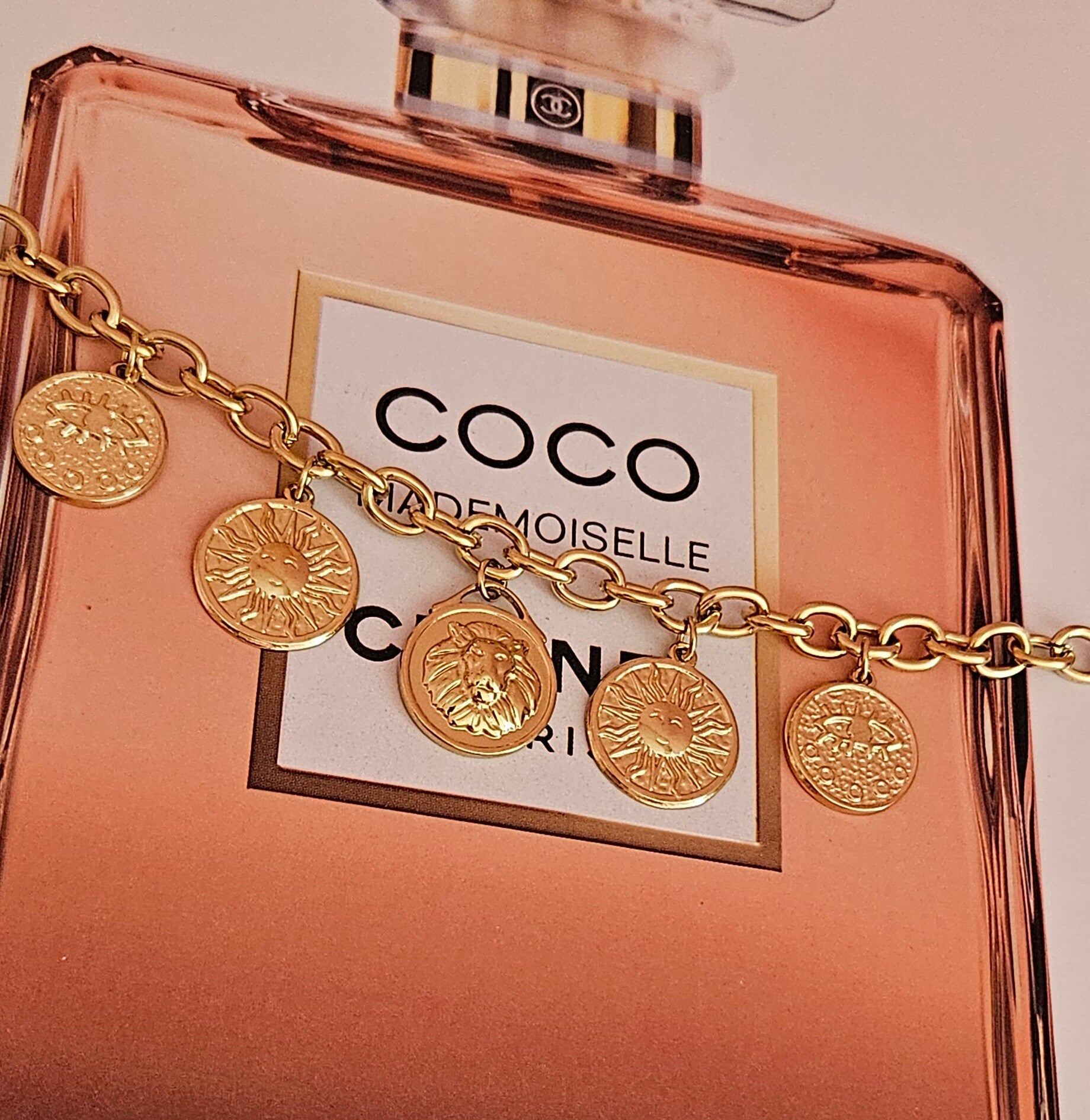 ✨ Bracelet Chaîne Dorée Breloques Symboliques – Lion, Soleil & Œil 🦁☀️👁️💛