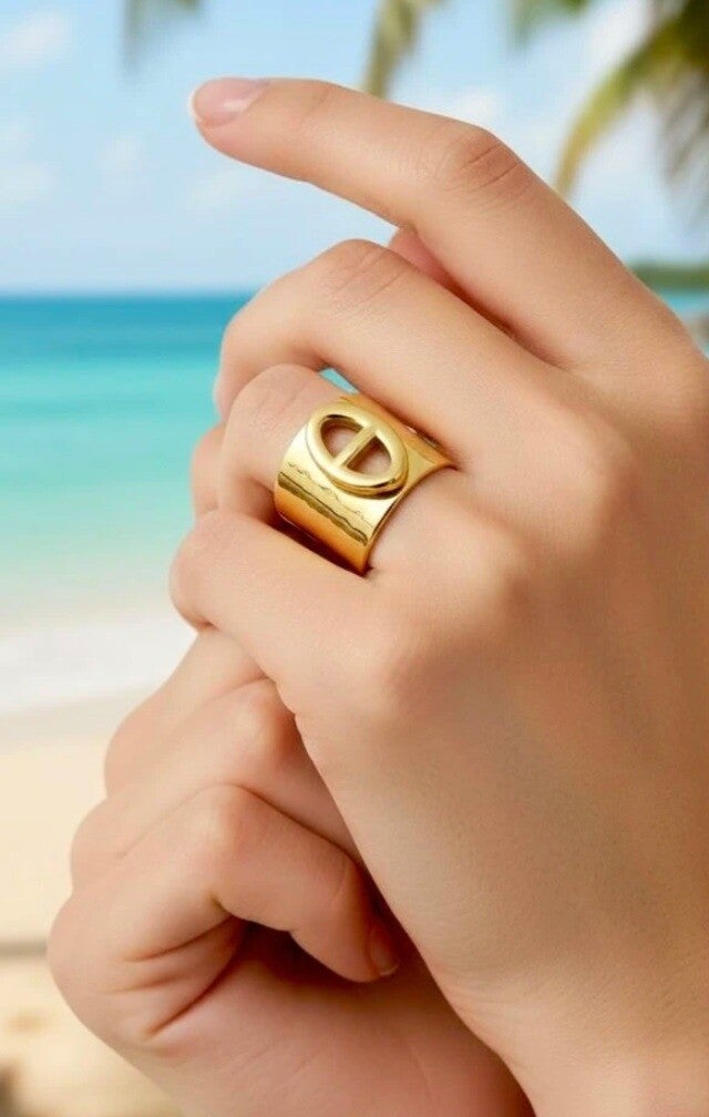 Découvrez cette superbe bague au design large et martelé, sublimée par une maille marine ouverte qui lui apporte une touche à la fois moderne et élégante ⚓️