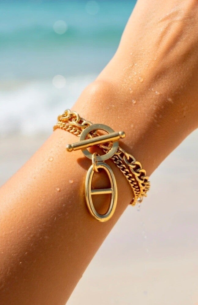 Découvrez ce magnifique bracelet double chaîne, disponible en doré ou en argenté, pour un style à la fois élégant et tendance ✨