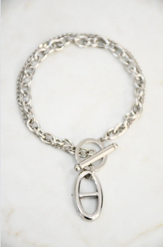Bracelet double chaîne étoile et maille marine