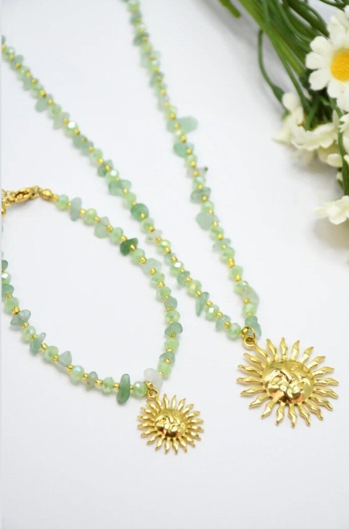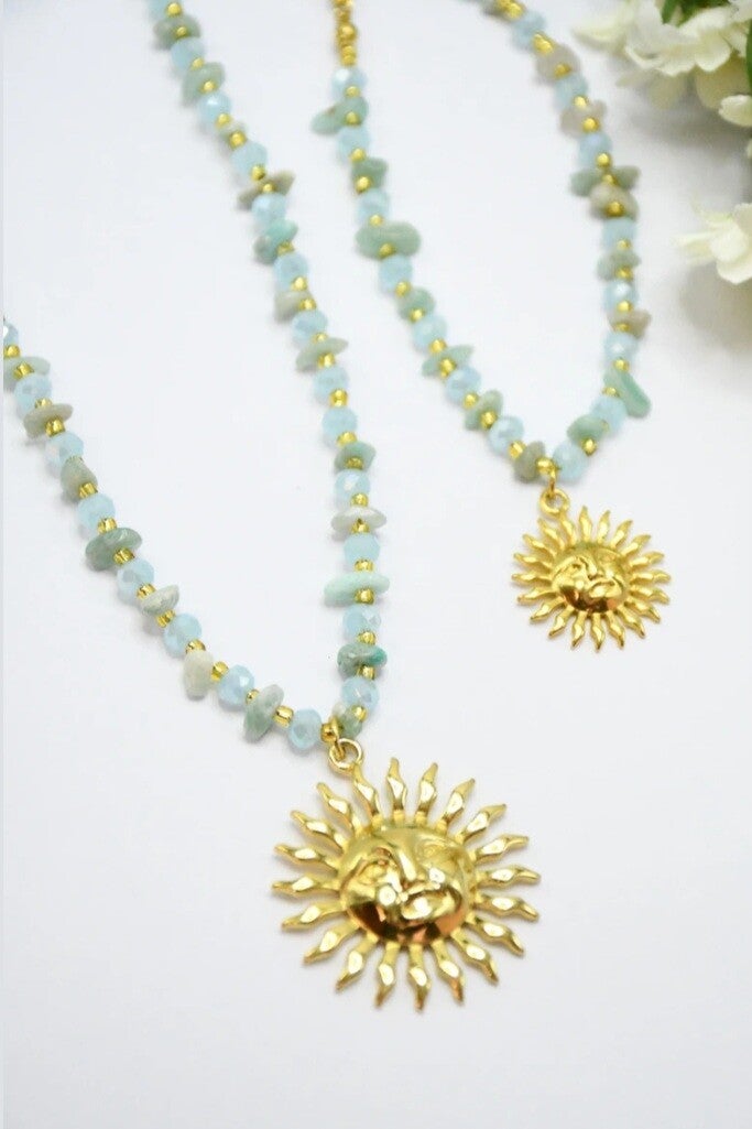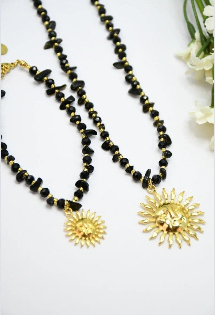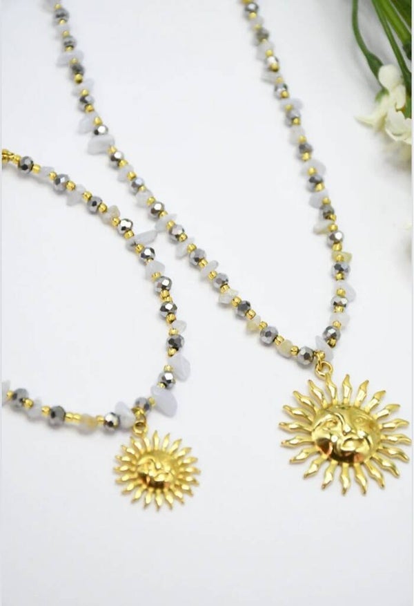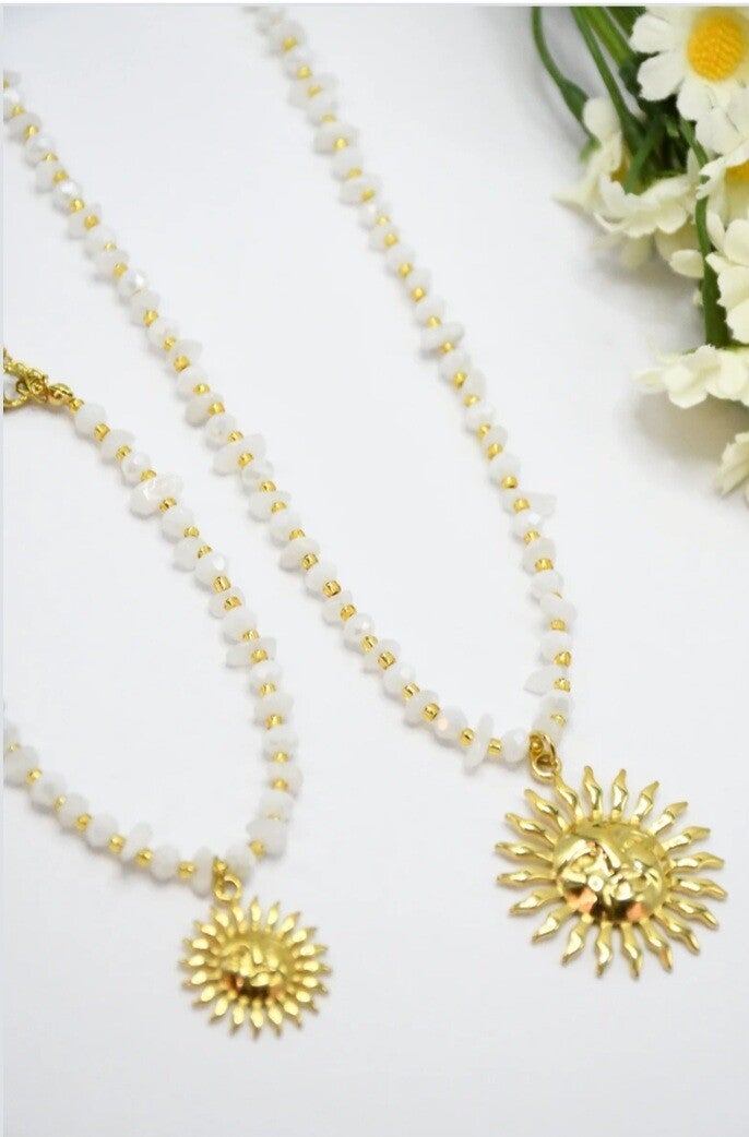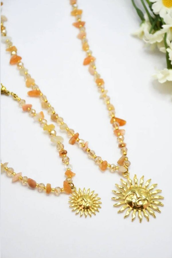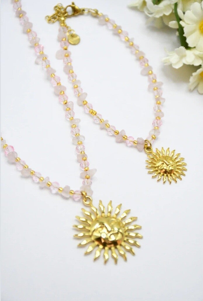 De délicates petites pierres en cristal 💎 accompagnent un magnifique pendentif soleil ☀️ qui apporte une touche éclatante et estivale 💫